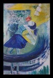 Las obras que ves aquí hacen parte de la serie Metáforas del Agua de la artista colombiana Natalia Pontón, reconocida por su estilo visceral y simbólico. En su pintura, el movimiento, el color y la figura humana se entrelazan para dar vida a espacios que evocan la abstracción de la naturaleza.